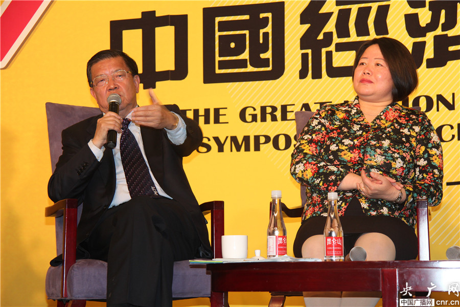左一:中國入世談判首席談判代表、原博鰲亞洲論壇秘書長 龍永圖;左二:商務部國際貿易經濟合作研究院副院長 邢厚媛(央廣網 李靜/攝)