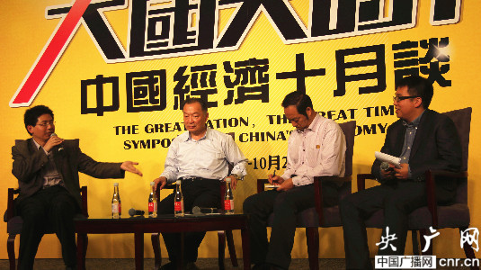 央廣網財經北京10月22日消息 由中央人民廣播電臺經濟之聲、央廣網主辦的《大國大時代----中國經濟十月談》系列時事報告會第七場在廣電國際酒店舉行。今天的主題是《農村談:農民與土地是歷史性地說再見了嗎?》。中國人民大學教授、可持續發展高等研究院執行院長溫鐵軍,國家發展改革委宏觀經濟研究院國土開發與地區經濟研究所副所長、研究員高國力和人民日報研究部副主任夏珺參加了報告會并發表演講。