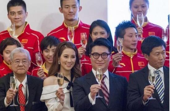 8月28日,中國奧運內地代表團訪港,在活動晚宴上徐子淇和李家城夫婦倆熱情接待了奧運內地代表團的成員們。
