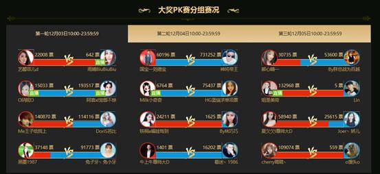 2016酷狗直播繁星音樂(lè)盛典總決選自11月17號(hào)零點(diǎn)開(kāi)通報(bào)名之后,賽況持續(xù)火熱,目前,海選資格賽和晉級(jí)賽已經(jīng)結(jié)束,此時(shí)正在進(jìn)行的是淘汰賽。此次決選的規(guī)模業(yè)內(nèi)空前,繁星藝人的支持票數(shù)最高有70多萬(wàn)票之多。賽況激烈,一些繁星藝人之間的PK僅有區(qū)區(qū)幾票之差。