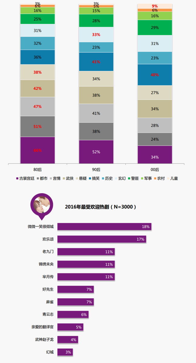 當下的年輕群體,是典型的“雜食性”動物,在追劇的題材上涉獵廣泛,有著從古裝宮廷到警匪軍事的超大跨度,喜歡都市言情的同時,也愛追懸疑燒腦類題材。雖然年輕人愛好多元,但喜劇卻是00后和 90后都偏愛題材。由此看來,憑借國民網綜《火星情報局》和一眾爆笑劇綜,享有“喜劇造劇工廠”之稱的優酷,霸屏00后和90后的想象力更大。