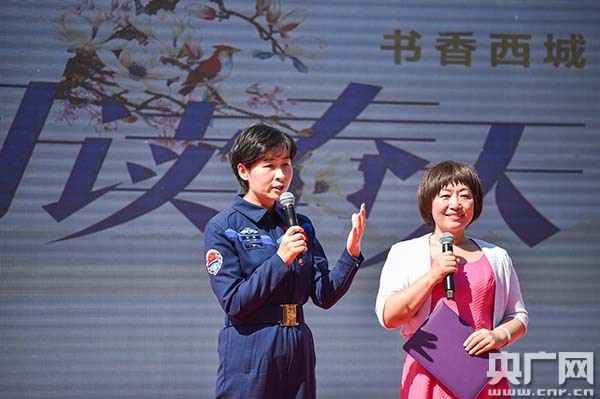 活動現場,西城區向15個特色閱讀空間頒發了“西城區特色閱讀空間”標志牌,還向對書香西城建設有突出貢獻的個人頒發了“西城區閱讀朋友”證書。英雄航天員劉洋作為西城區閱讀朋友上臺領獎,并回答了主持人代表觀眾所提的關于閱讀的問題。