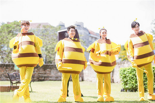 本期節目中,“時空商隊”還將集體化身“小蜜蜂”,輪番上演“刺猬陣氣球保護戰”。林允身穿蜜蜂裝自嘲上衣長到膝蓋,并贊嘆胡一天“你腿太長了”!胡一天呆萌低頭找腿,誰知視線被肥大的蜜蜂裝遮住,自嘲“太胖了,我都看不見腿了”,盡顯反差萌!更有林志穎再現段譽看家本領“凌波微步”,勇闖“刺猬陣”!