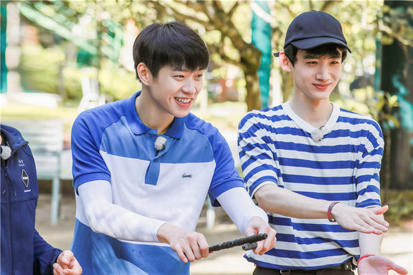 在終極大戰中,為了獲取有力線索,白敬亭、魏大勛搭檔挑戰“紙杯陣”。魏大勛蒙上雙眼,背著白敬亭走過由紙杯擺成的迷宮,一旦踢倒紙杯,就要吃掉相應的食物:不僅有美味的東南亞水果,還有洋蔥、榴蓮等重口味食物來襲!二人上演“勛花移山”,白敬亭吐槽好兄弟:“你可不可以別把我背太高了!”移動過程中,白敬亭耐心指導魏大勛移動,實力演繹“你是我的眼”,“山花組合”默契十足!