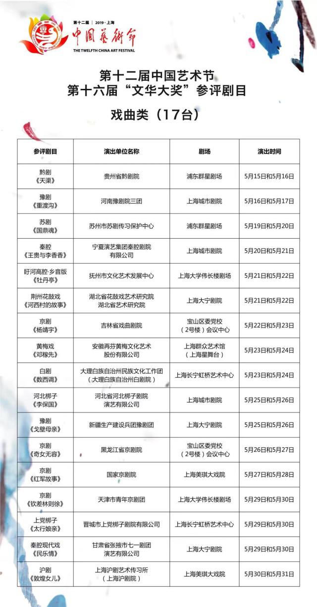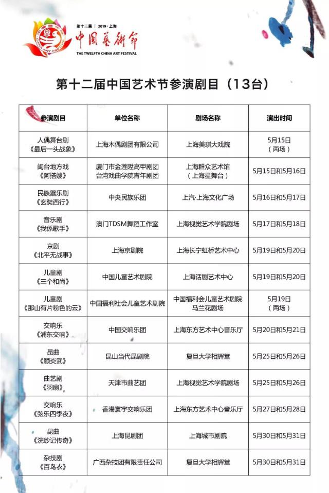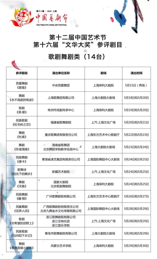 第十二屆中國藝術節51臺演出劇目日程公布啦,近日,參加第十二屆中國藝術節的51臺劇目演出日程正式公布。值得一提的是,經過業界專家、協會以及港澳臺地區推薦的13臺劇目也將在本屆藝術節集中亮相參演,為廣大觀眾帶來精彩紛呈的演出。