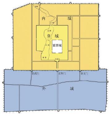 外城的每座城門內(nèi),都有一條筆直的干道。兩座城門間,加辟一條干道。