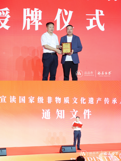 活動(dòng)現(xiàn)場(chǎng)還舉行了授牌儀式。福鼎市人大常委會(huì)主任、福鼎市茶產(chǎn)業(yè)發(fā)展領(lǐng)導(dǎo)小組常務(wù)副組長(zhǎng) 蔡梅生現(xiàn)場(chǎng)宣讀、福建品品香茶業(yè)有限公司董事長(zhǎng)林振傳入選國(guó)家級(jí)“非遺傳人”的通知文件,并授予林振傳董事長(zhǎng)“農(nóng)遺守護(hù)人”榮譽(yù)稱(chēng)號(hào)。