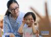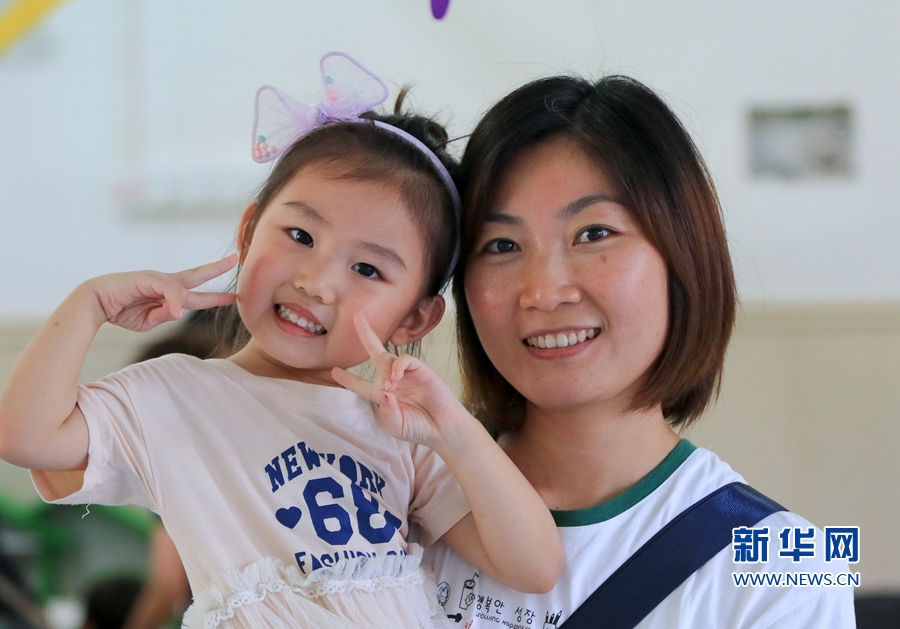 一名小女孩在媽媽的鼓勵(lì)下參加互動(dòng)游戲。新華網(wǎng) 肖和勇 攝 -