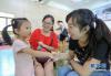 開(kāi)園第一天的晨檢,讓小朋友有些意外。但這更像一個(gè)儀式,其意義在于幫助孩子們養(yǎng)成健康、衛(wèi)生的生活習(xí)慣。新華網(wǎng) 肖和勇 攝 -