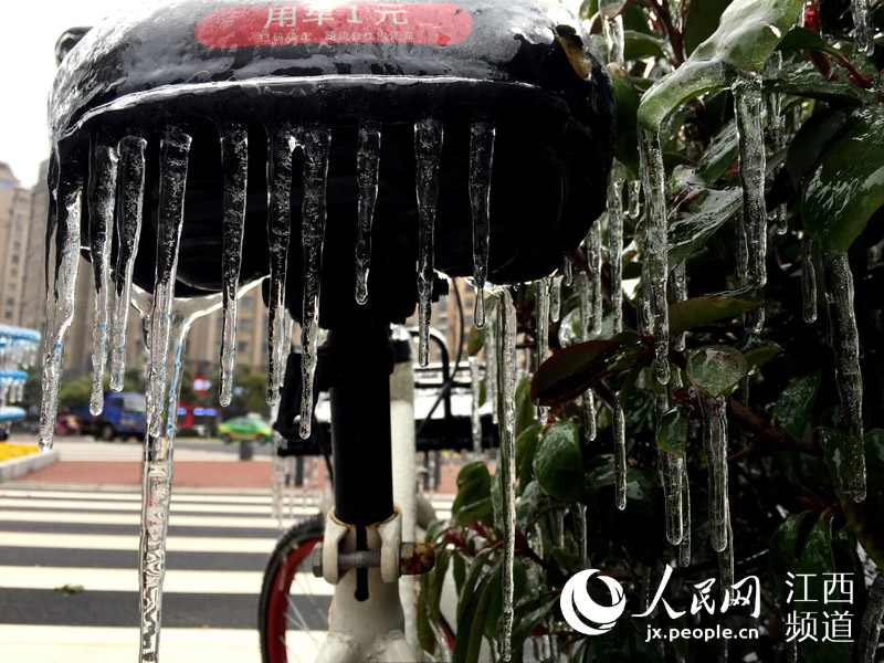 人民網南昌1月28日電(時雨)連日來,南昌遭遇低溫凍雨天氣,夜間的溫度跌至0℃以下。28日,本網在南昌街頭看到,低溫加凍雨使戶外的物體裹上了厚厚的“冰衣裳”,散落在街頭的各類共享單車不少已經成為“冰雕”,車把手、車筐甚至車輪胎都結了冰,這些被“冰封”的共享單車?吭诼愤厽o人問津。 -