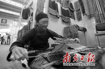 在文博會8號館非物質文化遺產館,參展商正在展示黎族傳統紡染織繡技藝。南方日報記者 朱洪波 攝
