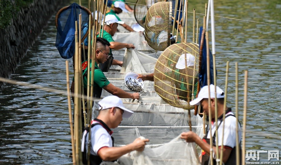 九江水產(chǎn)養(yǎng)殖師傅在表演傳統(tǒng)技藝開側(cè)及數(shù)魚花。(央廣網(wǎng)發(fā) 通訊員陳國杰供圖)