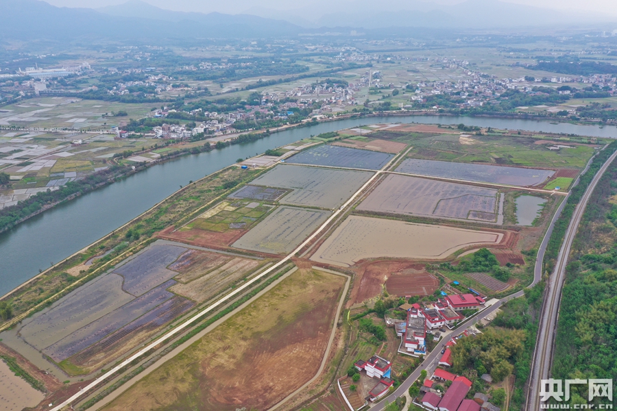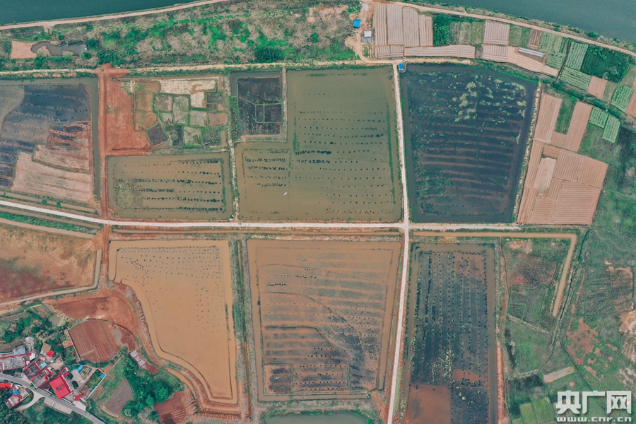 俯瞰數百畝稻蝦田。(央廣網記者 官文清攝)