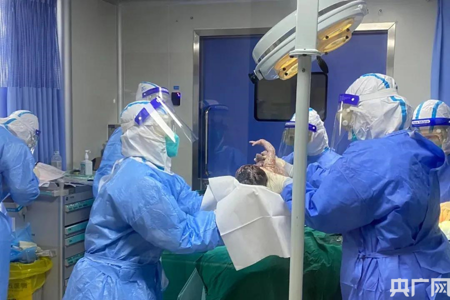 據主刀醫生陳汝芳介紹,該手術有兩大難點,“一是麻醉師穿著防護服,戴著防護罩,還有三層手套;二是手術醫生操作不便,視線也不是很清晰!