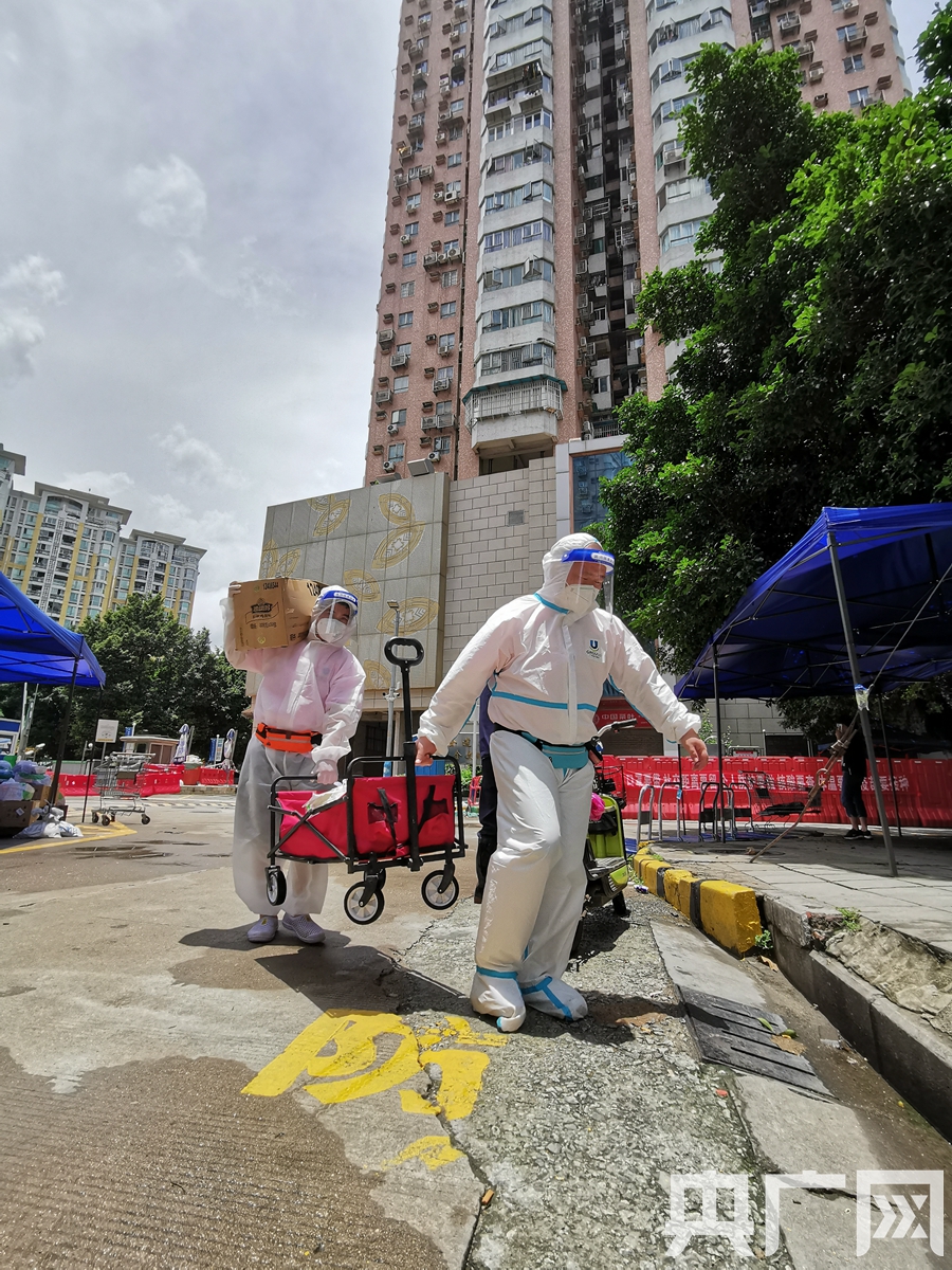 志愿者為封閉封控區居民配送物資。(央廣網發 廣州市宣供圖)