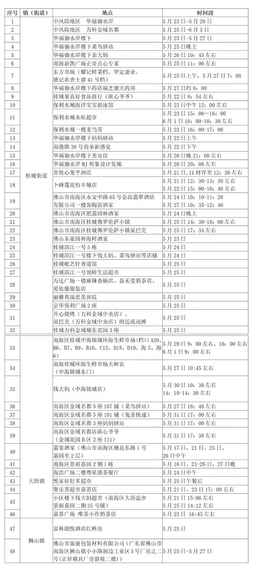 央廣網(wǎng)佛山6月8日消息(記者夏燕 佛山電臺(tái) 付國(guó)華)6月8日,佛山市南海區(qū)新冠病毒肺炎疫情防控指揮部辦公室通報(bào)了近期新冠病毒感染者涉及的48個(gè)重點(diǎn)場(chǎng)所或小區(qū)。