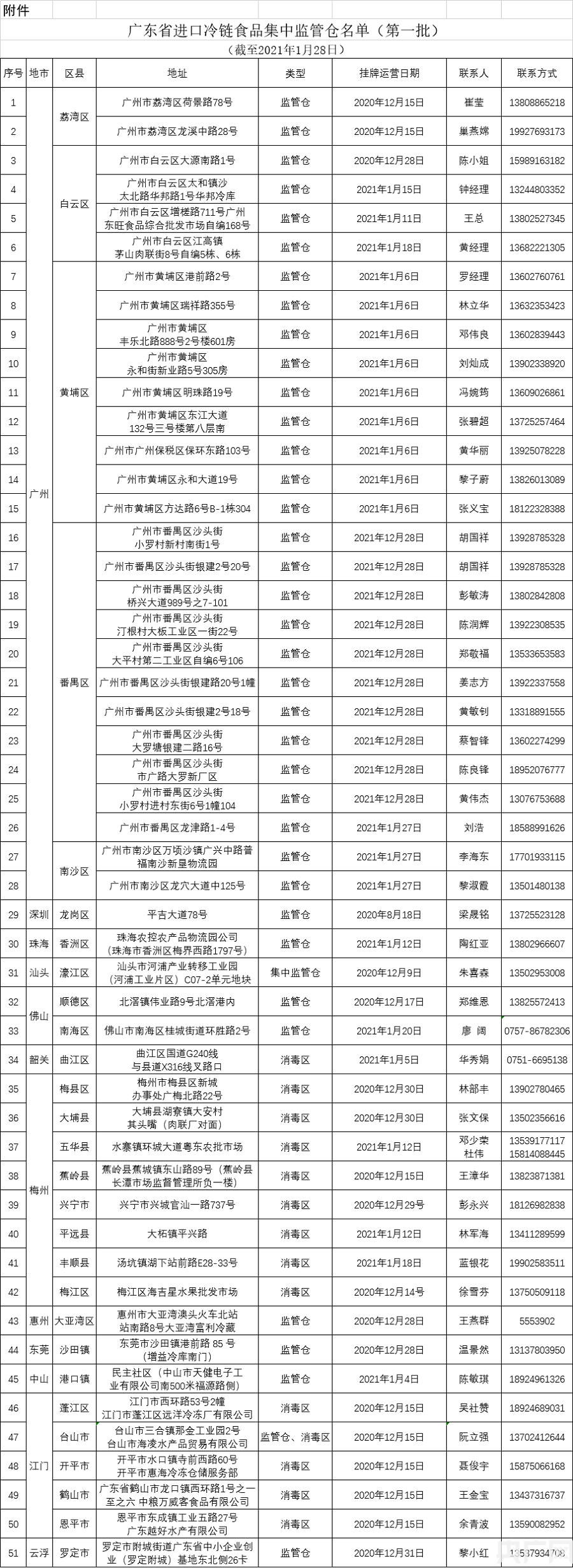 附件:廣東省進(jìn)口冷鏈?zhǔn)称芳斜O(jiān)管倉名單(第一批)