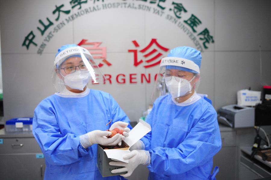 醫護人員收到荔枝。(央廣網發 通訊員供圖)
