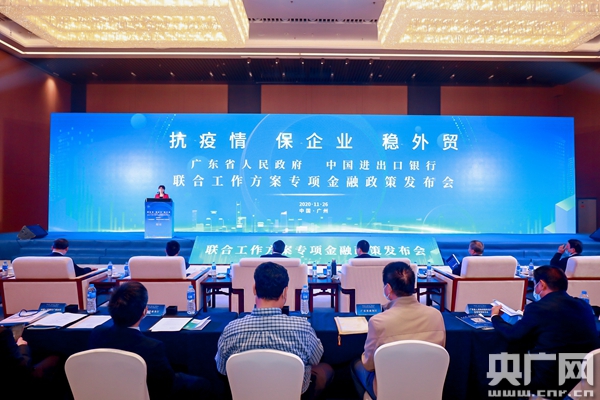 央廣網廣州11月26日消息(記者陳越 通訊員吳曉菲)11月26日,“抗疫情 保企業(yè) 穩(wěn)外貿”——廣東省人民政府 中國進出口銀行聯合工作方案專項金融政策發(fā)布會(以下簡稱“發(fā)布會”)在廣州舉行。廣東省政府領導、中國進出口銀行行長吳富林出席發(fā)布會并致辭。此次會議由廣東省商務廳、中國進出口銀行廣東省分行聯合主辦,廣東省發(fā)改委、財政廳、工業(yè)和信息化廳、商務廳、國資委、地方金融監(jiān)管局、人民銀行廣州分行、中國出口信用保險公司廣東分公司、廣東各地市商務局和廣東80余家重點企業(yè)參加發(fā)布會。