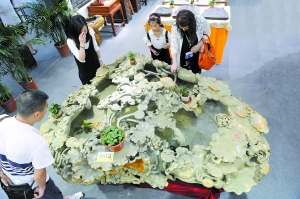 市民爭相觀賞端硯作品《荷塘清趣》。