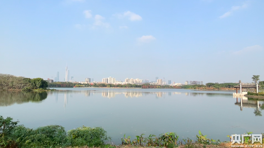 海珠湖遠(yuǎn)處約3公里的地方就是廣州塔(央廣記者 王志達(dá) 攝)
