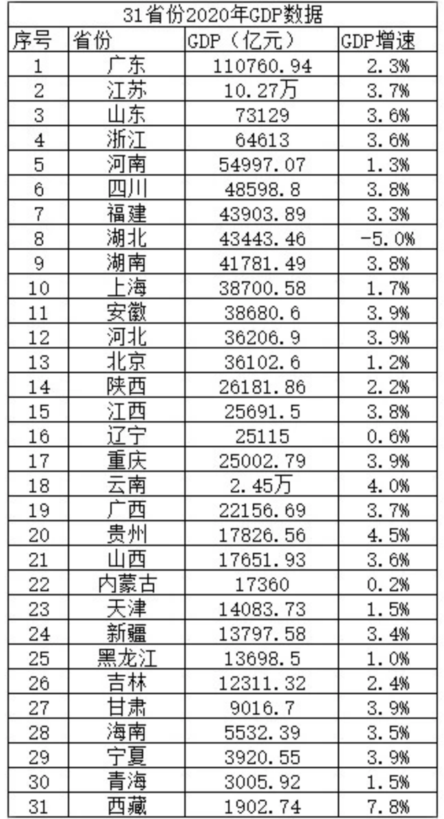 2月6日,山東省第十三屆人民代表大會(huì)第五次會(huì)議閉幕。至此,除河北和黑龍江之外,全國(guó)各省市自治區(qū)2020年經(jīng)濟(jì)成績(jī)單全部出爐,粵蘇魯三省經(jīng)濟(jì)總量繼續(xù)領(lǐng)跑全國(guó),繼續(xù)名列中國(guó)經(jīng)濟(jì)“錢(qián)三強(qiáng)”。