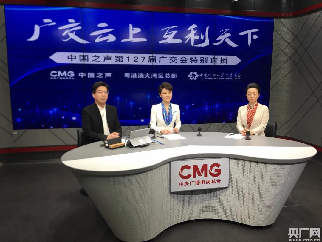 在廣交會云端開啟的同時,中央廣播電視總臺中國之聲、粵港澳大灣區(qū)總部、央視新聞新媒體聯(lián)合推出特別直播節(jié)目《廣交云上,互利天下》,這也是中國之聲廣播頻率與央視新聞新媒體首次實(shí)現(xiàn)音視頻同步“多點(diǎn)融合”直播。