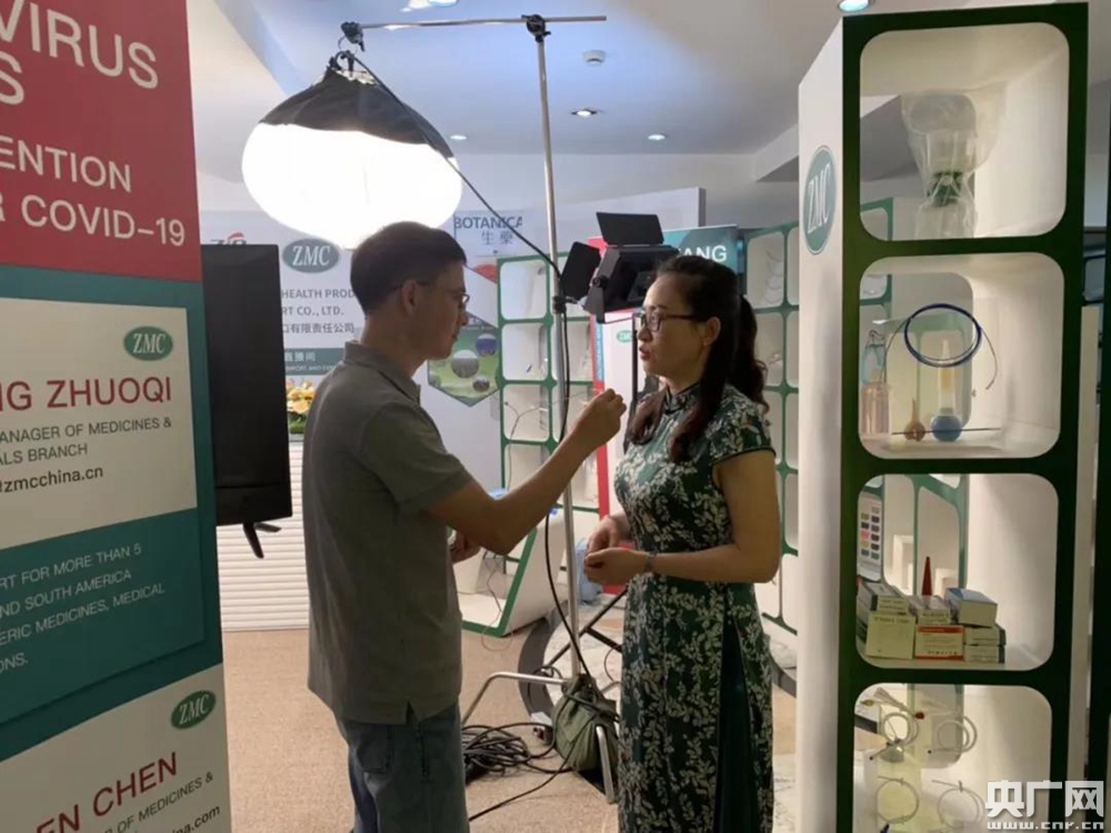 總臺央廣記者張國亮采訪浙江省醫(yī)藥保健品進(jìn)出口有限公司黨總支書記、總經(jīng)理王巧群