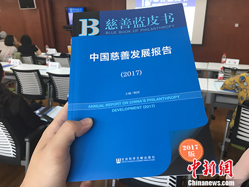 圖為《慈善藍皮書:中國慈善發展報告(2017)》。湯琪 攝