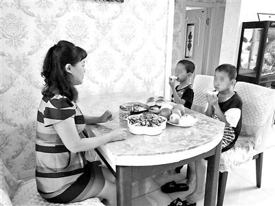 兩個(gè)孩子在學(xué)校老師家吃飯