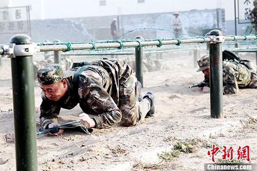 資料圖:新兵正在匍匐前進(jìn)。中新社記者 張?zhí)砀?攝