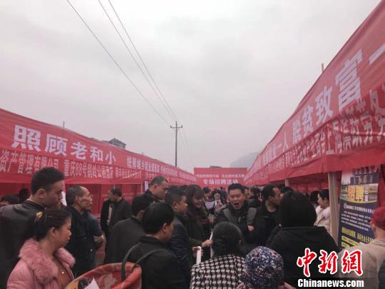 圖為重慶酉陽(yáng)縣麻旺鎮(zhèn)就業(yè)扶貧招聘活動(dòng)現(xiàn)場(chǎng)。 肖彥 攝
