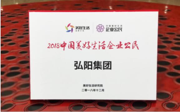 2018年12月12日,“致敬改革開放·致遠美好生活——2018中國地產(chǎn)新時代盛典”在北京舉行,弘陽集團榮獲“2018中國美好生活企業(yè)公民”稱號。