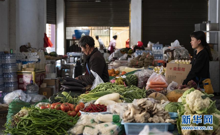 4月13日,云南省貢山縣獨龍江鄉農貿市場里有各種從山外運來的新鮮蔬菜。