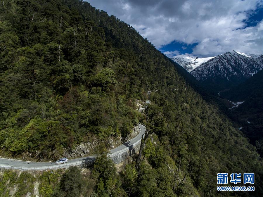 這是4月13日無人機拍攝的貢山縣通往獨龍江鄉的公路。