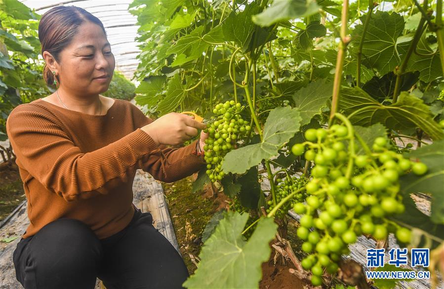 4月24日,河北省棗強縣唐林鎮李進伯村的農民給葡萄疏果。