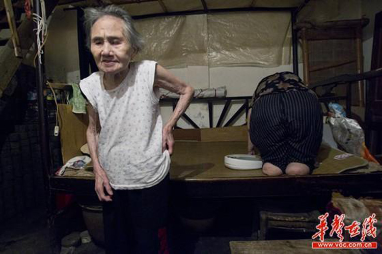 楊玉輝母女倆的家,隱藏在長沙繁華都市深處。在幸福橋社區住了近一個世紀的家里,九旬老人王仲蓮60年如一日地照顧重殘“無腳女兒”楊玉輝,用言行踐行母親責任、用一生書寫母愛光輝。60年來,王仲蓮的時間都是圍著女兒轉的,每天早晨,她起床第一件事就是幫女兒穿衣,洗臉,喂飯,圖為老人照顧女兒如廁,將坐便器放在床上。