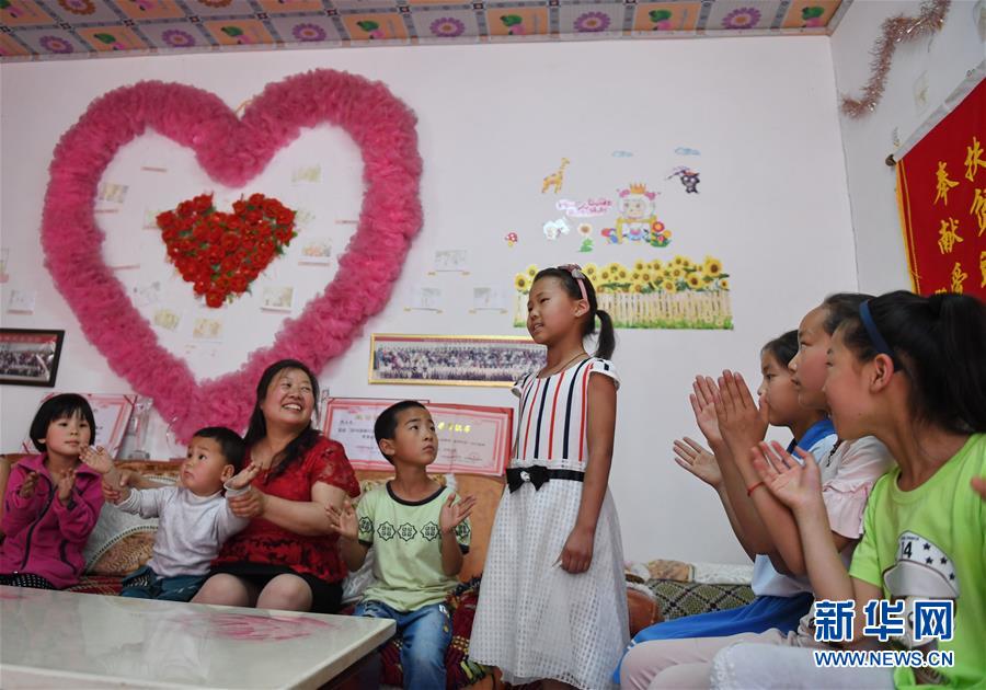 5月14日,孩子們在“愛心小屋”內比賽唱歌。現(xiàn)年52歲的陳玉文是河北省磁縣講武城鎮(zhèn)學區(qū)的一名普通教師。為了讓更多的留守孤困兒童感受到“母愛”的溫暖,2011年,她在自己的家里建起了“愛心小屋”,成為二十多個留守孤困兒童的“代理媽媽”。每逢周末和寒暑假,孩子們都會聚在這里,一起玩游戲、看課外書,和遠在外地的爸爸媽媽網(wǎng)上聊天。多年來,陳玉文用真情和母愛在“愛心小屋”里為留守孤困兒童撐起了一片天,在她的感召下,當?shù)卦絹碓蕉嗟膼坌娜耸考尤氲搅恕按韹寢尅钡男辛校瑸榱羰毓吕和瘞頊嘏P氯A社記者 牟宇 攝
