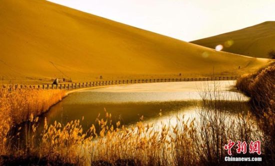 敦煌鳴沙山月牙泉羊年首日晨景醉游人