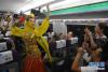 蘭州客運段列車員在蘭州鐵路局開行的首趟寶蘭高鐵G2028次動車組上為旅客表演節目。新華社記者 陳斌 攝 -