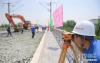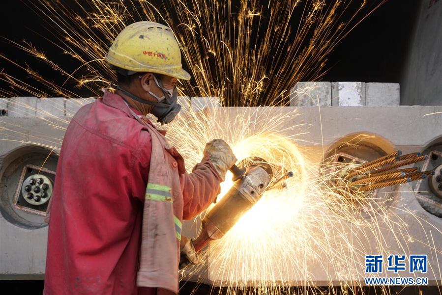 中鐵十四局集團的工人在魯南高鐵山東臨沂段施工。新華社記者 邢廣利 攝 -