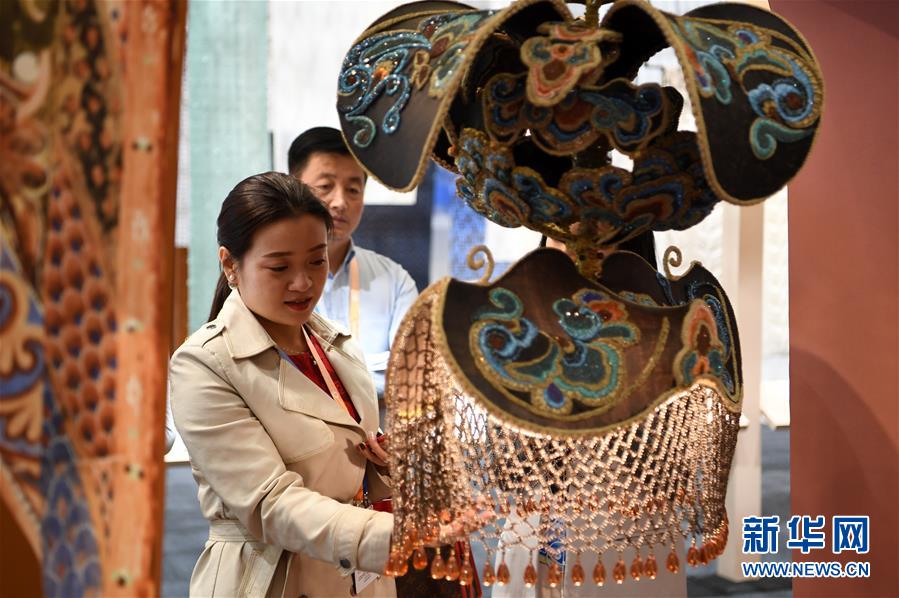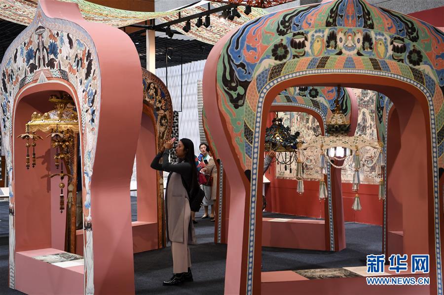 •      9月27日,在敦煌國際會展中心,參觀者欣賞展出的藝術品。新華社記者范培珅 攝