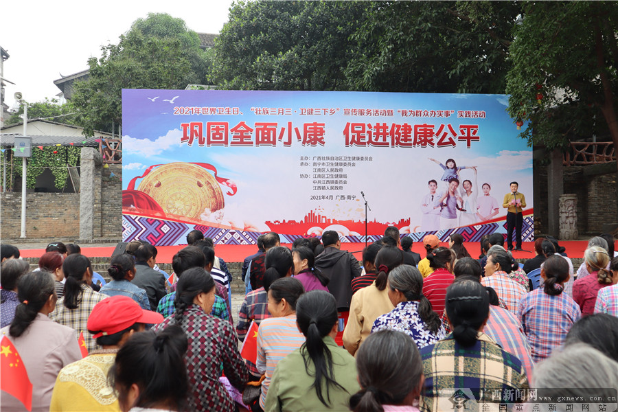 廣西新聞網南寧4月7日訊(記者 黎伊瑋)今年4月7日是第72個世界衛生日,我國的宣傳主題為“鞏固全面小康,促進健康公平”。為了推動全區廣大人民群眾對衛生健康的重視,不斷提高全區各族人民的健康水平,2021年世界衛生日、“壯族三月三·衛健三下鄉”宣傳服務活動暨“我為群眾辦實事”實踐活動在南寧市江西鎮揚美古鎮金馬街廣場舉行。此次活動由自治區衛生健康委員會主辦,南寧市衛生健康委員會、江南區人民政府承辦,江南區衛生健康局、中共江西鎮委員會、江西鎮人民政府協辦。