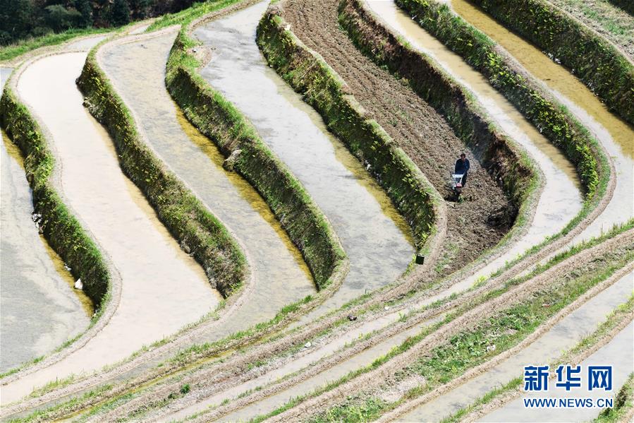 春耕時(shí)節(jié),貴州省黔東南苗族侗族自治州從江縣農(nóng)民搶抓農(nóng)時(shí)犁田耕地。近年來,適合山區(qū)梯田耕作的微耕機(jī)逐漸取代耕牛,成為黔東南山區(qū)農(nóng)民春耕的“新寵”。
