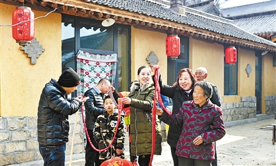 在阜平縣駱駝灣村,村民唐宗秀(前排右一)家的老屋已經(jīng)翻蓋成了6間新房。2016年,她家拿到土地流轉(zhuǎn)金5939元,人均收入4944元,在當年底前脫了貧。記者賈恒趙威 攝