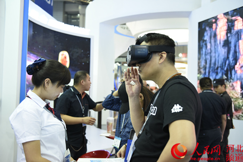 游客在河北展館體驗(yàn)高科技產(chǎn)品。王雅潔 攝