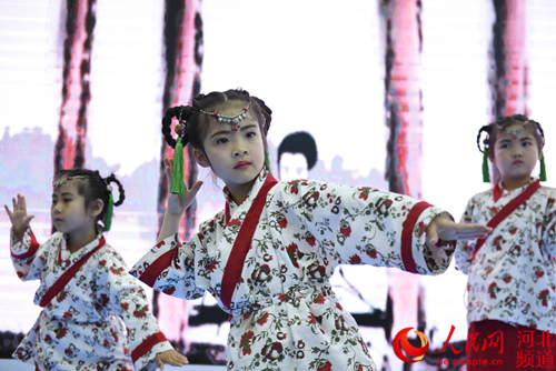 小朋友們?cè)诤颖闭桂^進(jìn)行文化展演。王雅潔 攝