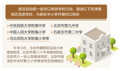從近日召開的雄安新區(qū)教育發(fā)展工作交流會(huì)上獲悉,雄安新區(qū)正式成立教育咨詢委員會(huì),并向首批20多位委員、受聘專家頒發(fā)聘書。同時(shí),新區(qū)啟動(dòng)新一批對(duì)口幫扶學(xué)校行動(dòng),邀請(qǐng)中央民族大學(xué)附屬中學(xué)、北京市第九中學(xué)、中國(guó)人民大學(xué)附屬小學(xué)、石家莊市第二中學(xué)、河北師范大學(xué)附屬小學(xué)等一批京津冀地區(qū)優(yōu)質(zhì)學(xué)校,與新區(qū)中小學(xué)開展對(duì)口幫扶。