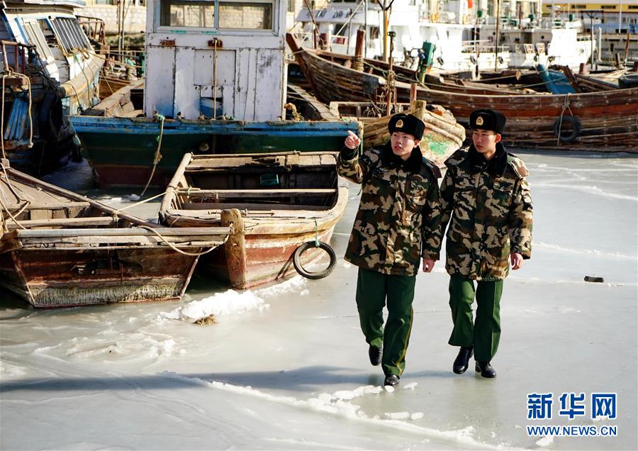 •      1月29日,河北省秦皇島邊防支隊北戴河邊防派出所官兵在轄區漁港碼頭巡邏。新華社記者 楊世堯 攝