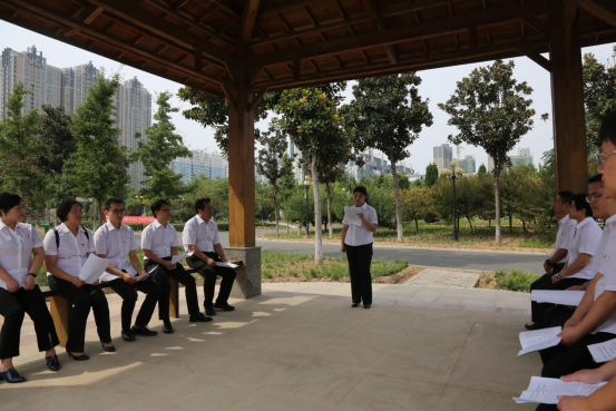 參觀結束后,鄭州新區支行黨支部來到中原英烈館西側的廊亭下,召開了“緬懷革命先烈、提振攻堅精神”主題黨日專題座談會。由黨員代表結合主題教育開展以來的學習情況,及主題黨日活動,談談自己的心得體會。同志們都認為主題教育開展以來,對自身的學習起到了很好的促進推動作用,尤其是主題黨日活動,通過緬懷革命先烈的英雄事跡,滌除污垢,純化自己的初心,強化自己的使命擔當。
